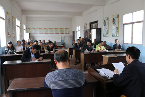 第二阶段,贾支书首先传达了《阳新县关于做好换届选举工作的通知》文件精神,并对选举工作进行动员部署,明确换届选举工作的方法、步骤及时间安排。随后进行阳新县第十四届代表大会选举,会议审议一致通过了选票,并依据上级批复和选举办法,以差额选举无记名投票的方式选举。