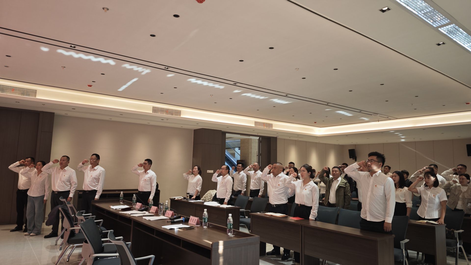在党员会上,全体党员干部重温入党誓词,更深切地体会到党员身份的荣光与使命,进一步增强了归属感和凝聚力。