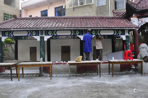 我馆为了达到提升内部展览目的,根据设计方案对碑廊进行重新装修,现场可见刻画的金龙栩栩如生,伴有精美的五彩祥云,其中有构架精犷壮观,雕刻彩饰华丽堂皇,具有较高的审美和游览价值。