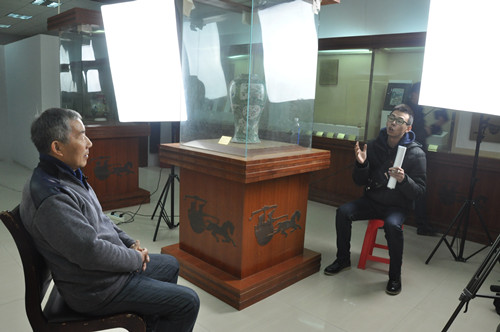 12月1日下午,来自湖北电视台《寻访》栏目的工作人员在博物馆拍摄取材。《寻访》栏目是一档拍摄中国文物历史的专题节目,此次采访主要是对阳新博物馆代表性文物素材进行拍摄 电视台编导采访了费杰成老师,费老师详细介绍了其在文物发掘工作期间的经历和文物背后的历史故事,为广大群众了解阳新博物馆馆藏文物的历史价值开创了新的渠道。